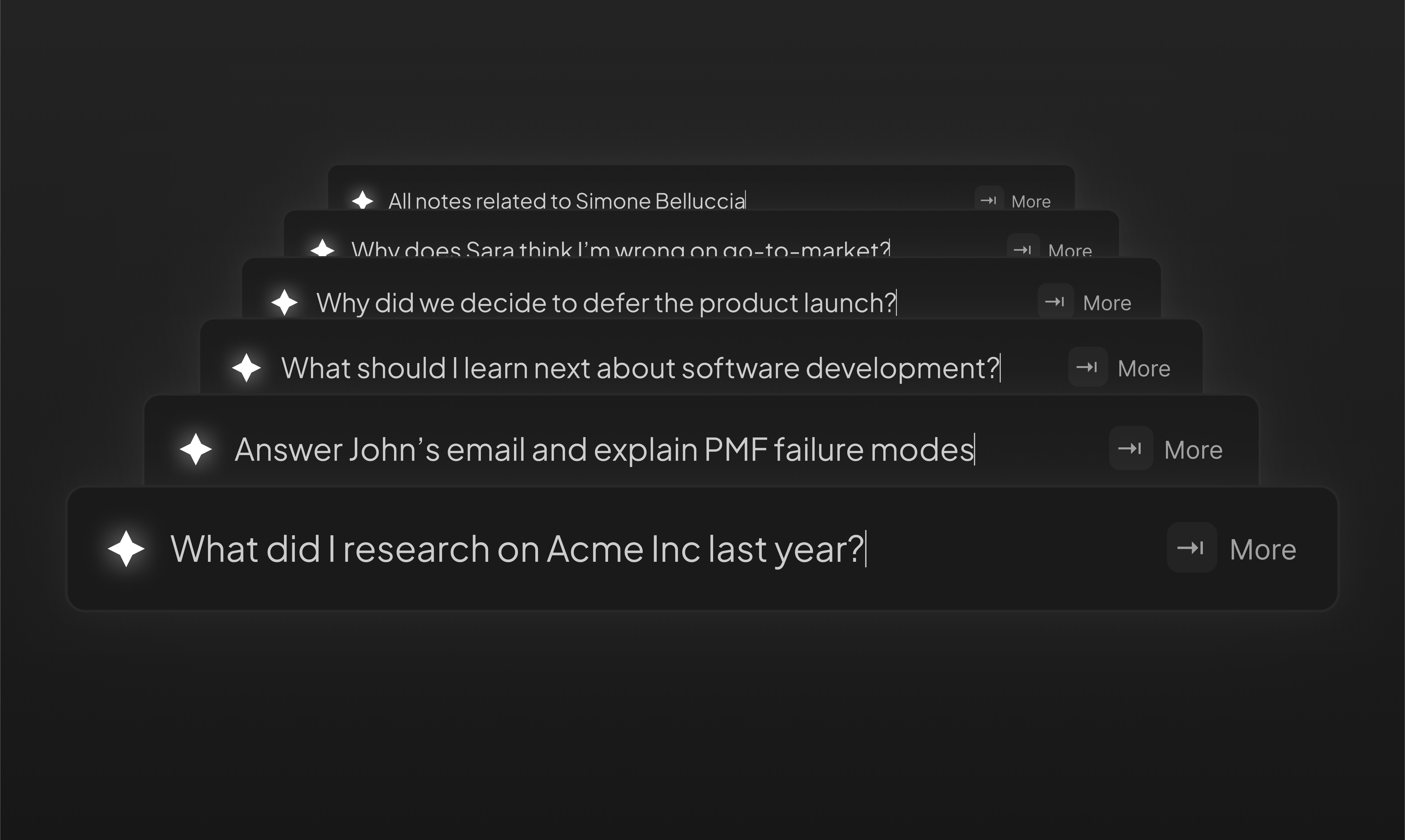 While pioneers like Tiago Forte, Dan Shipper and Nick Milo have come up with best-in-class systems to manage oneself, it’s still all manual effort. We spend time structuring, sorting, filtering and tagging information and yet still waste time browsing and searching whenever we need to access our knowledge.